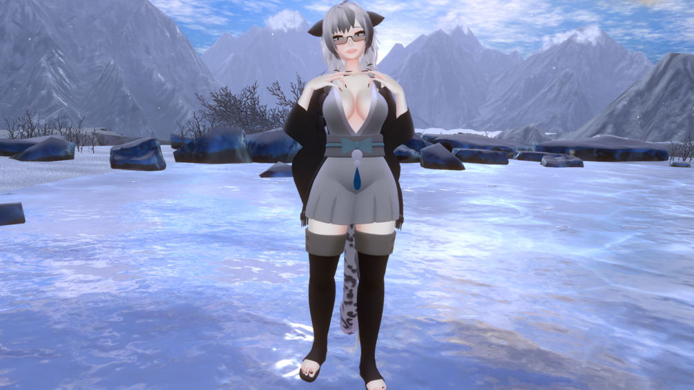 Welcome Leeah, the soft and caring snowleopard mommy. Headpets and other playful things, our usual set of sliders - brightness, thickness, shinyness -, expressive ears with gestures and our alternate way of having you or other people activate toggles or move stuff to the side by simply pulling on it far enough!