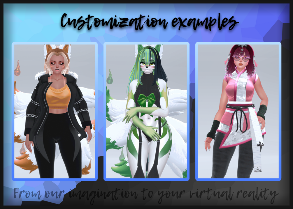 You'll get unity packages, explanations and a render to use as an upload picture for all the different versions of the selected bundle to enjoy this avatar on PC and Quest!